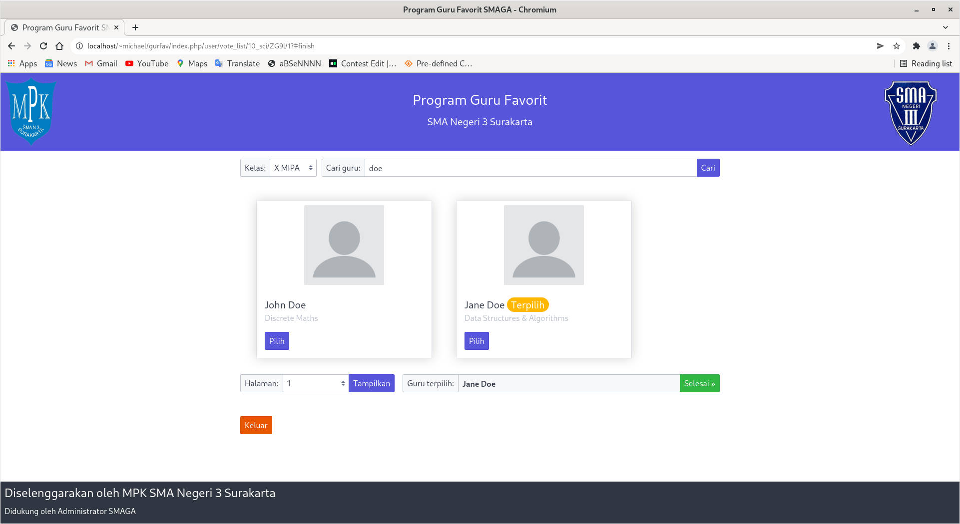 Proyek ini merupakan proyek E-voting dan juga merupakan bagian dari program MPK SMAN 3 Surakarta dalam rangka penyelenggaraan agenda tahunan yaitu pemilihan guru favorit (GURFAV).