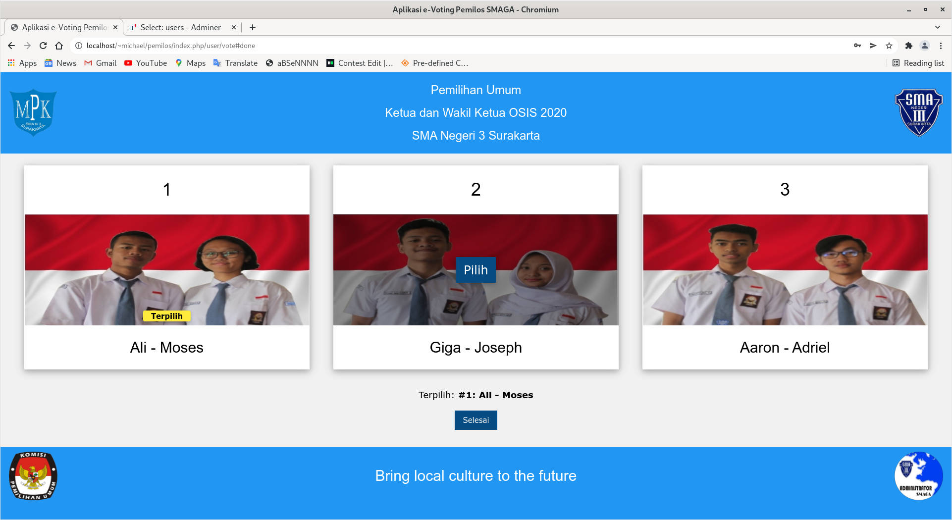 Proyek ini merupakan e-voting dan diinisiasi oleh MPK SMAN 3 Surakarta demi mendukung keberjalanan agenda tahunan yaitu pemilihan ketua OSIS periode kala itu, dan juga sebagai kolaborasi antar-organisasi dengan Administrator SMAN 3 Surakarta.
