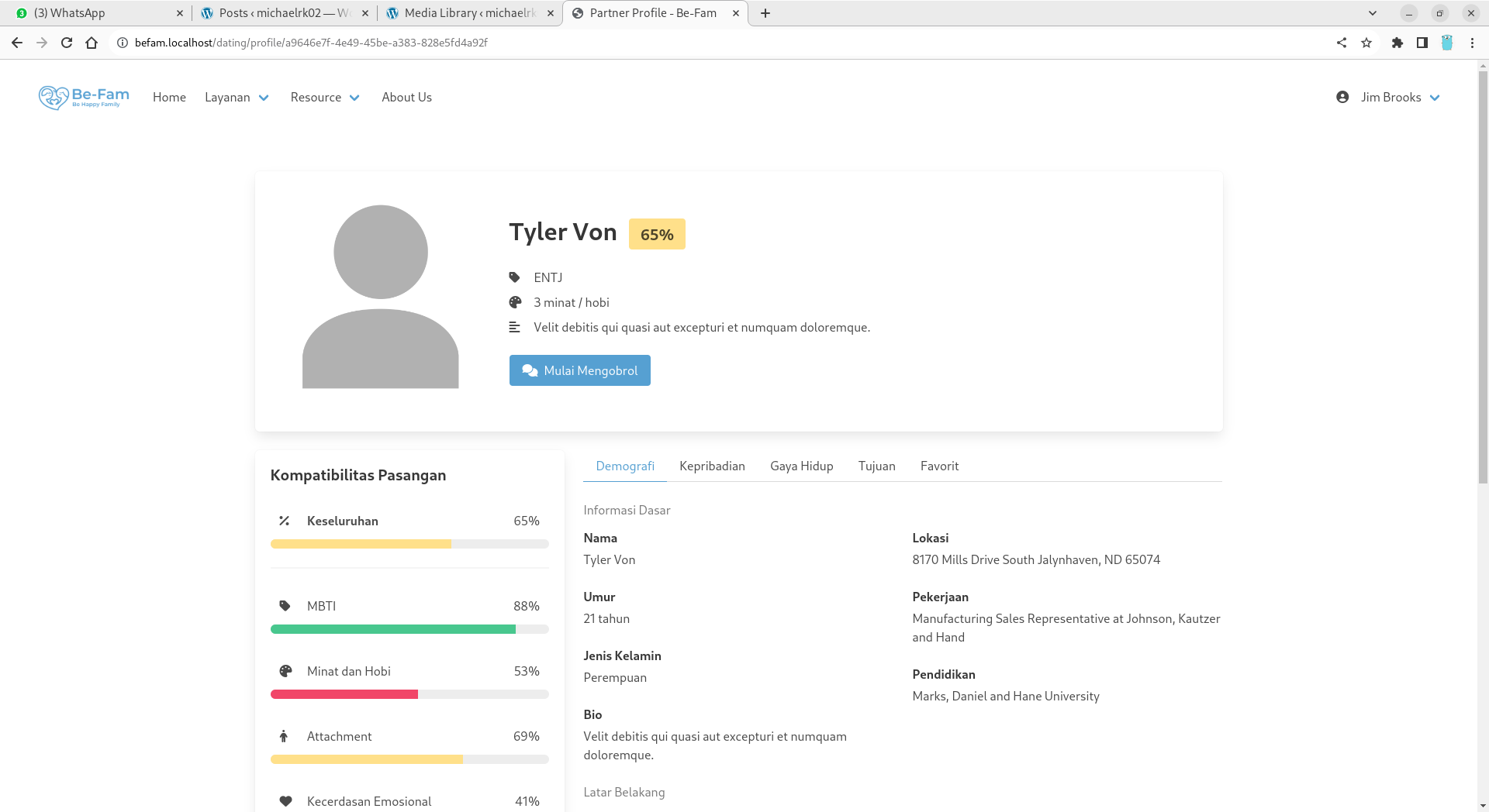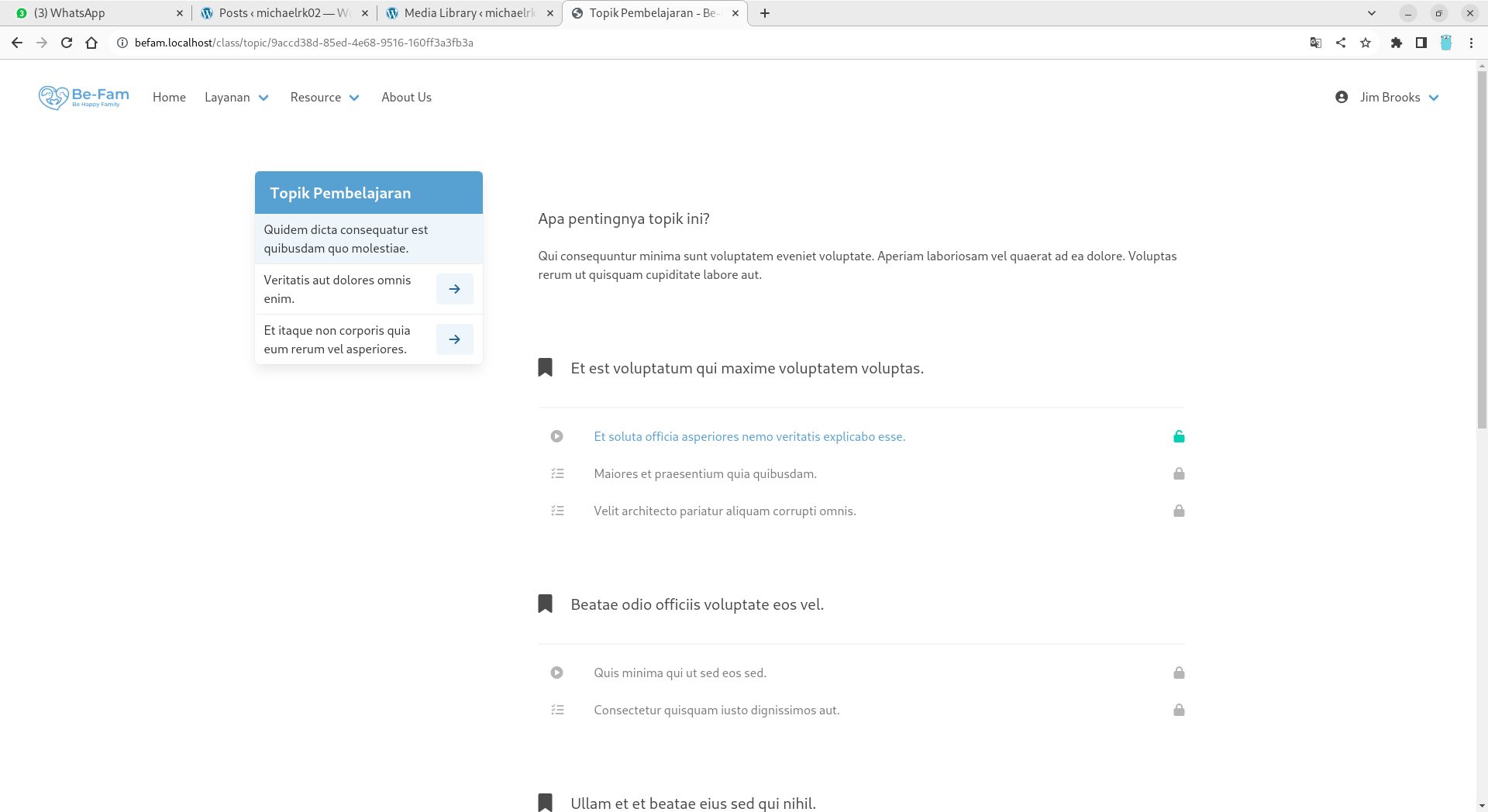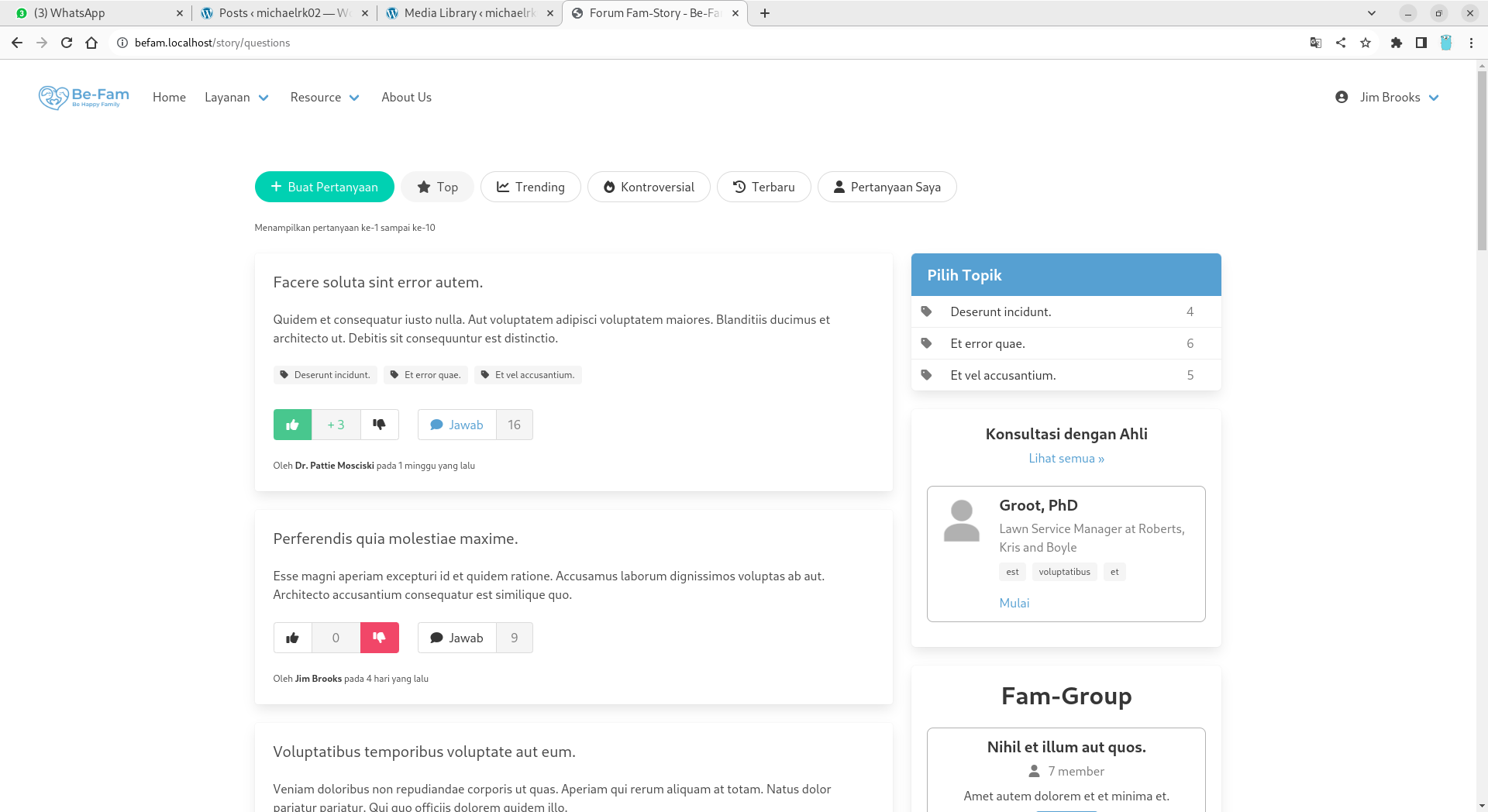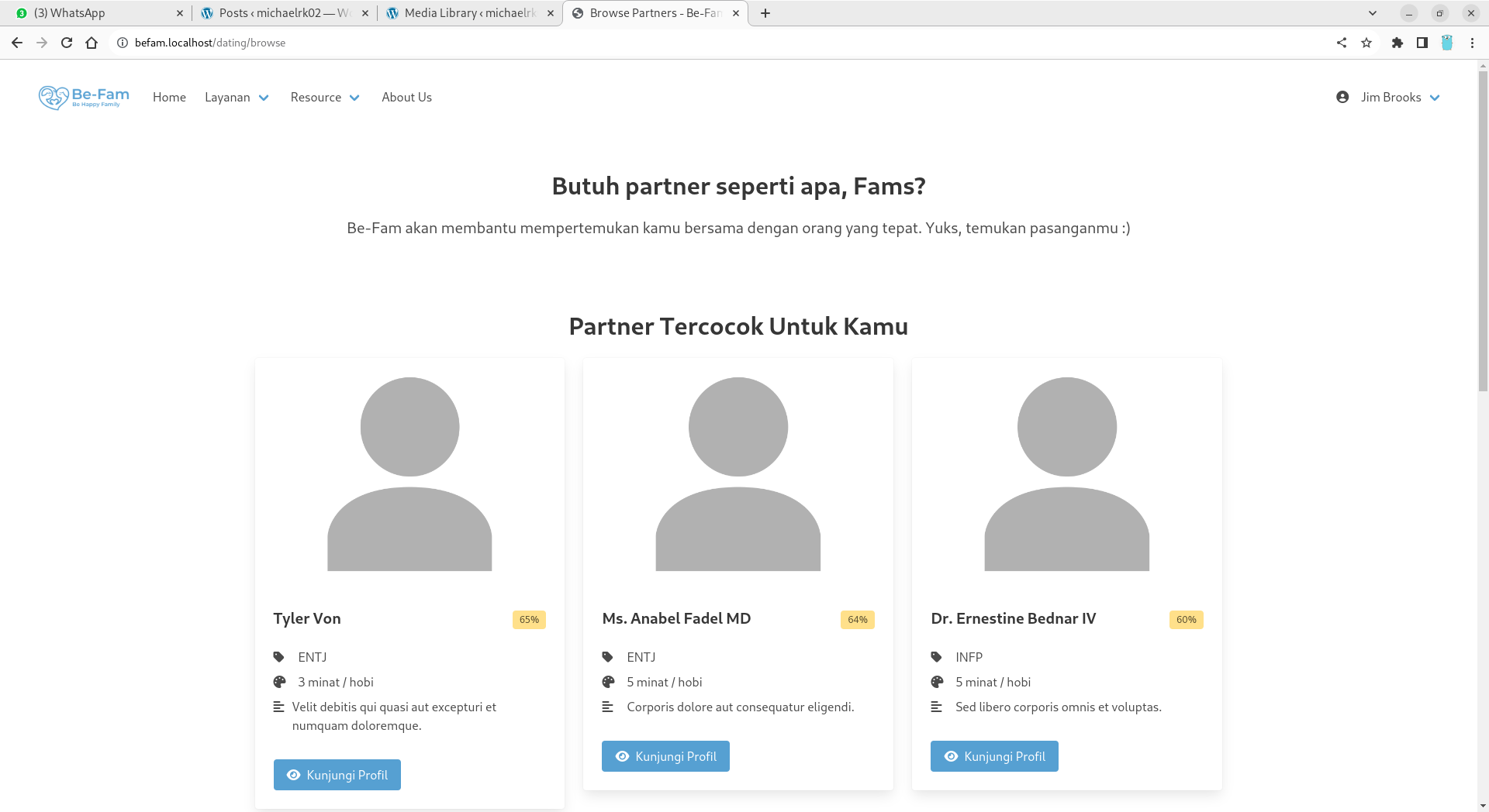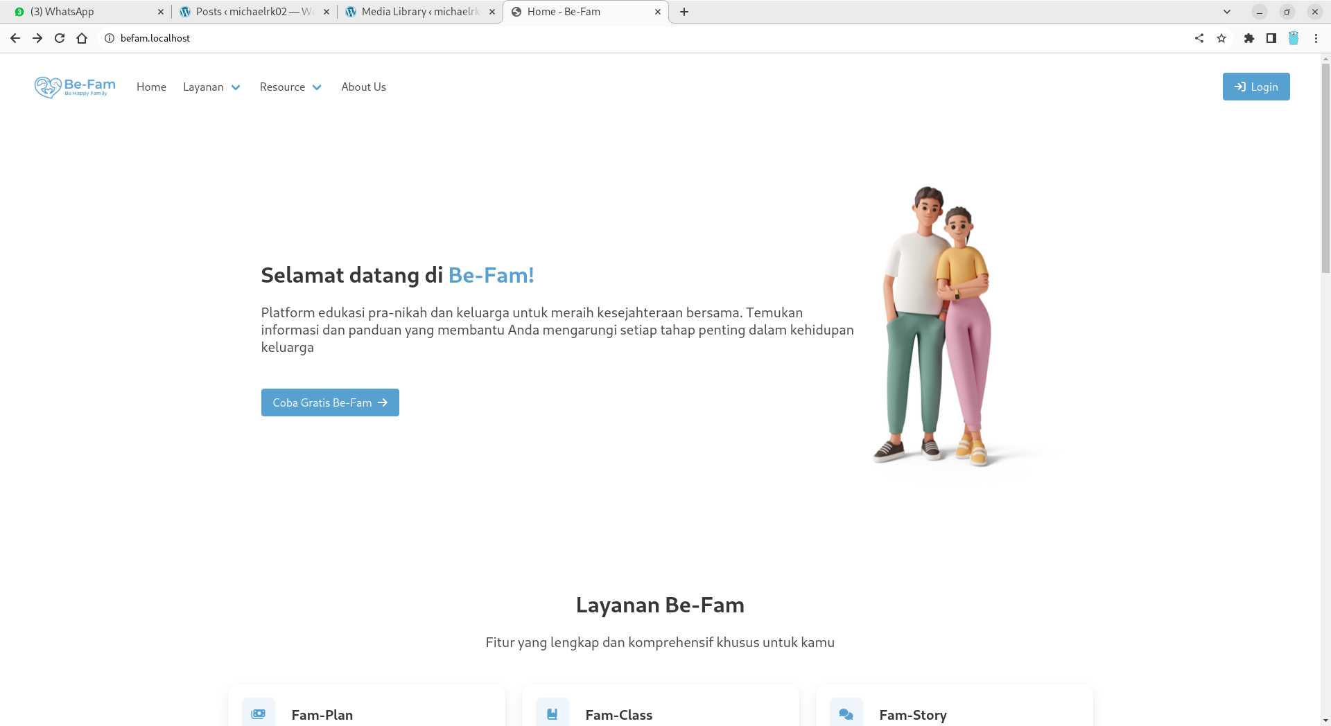 Website ini dibuat sebagai platform utama dari Start-Up (Be-Fam) mendeliver layanan dan produknya. Selain itu website menjadi target luaran yang diwajibkan. Fitur yang tersedia antara lain: